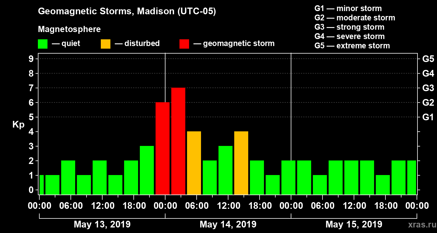 Geomagnetic storms in Madison in May 2019