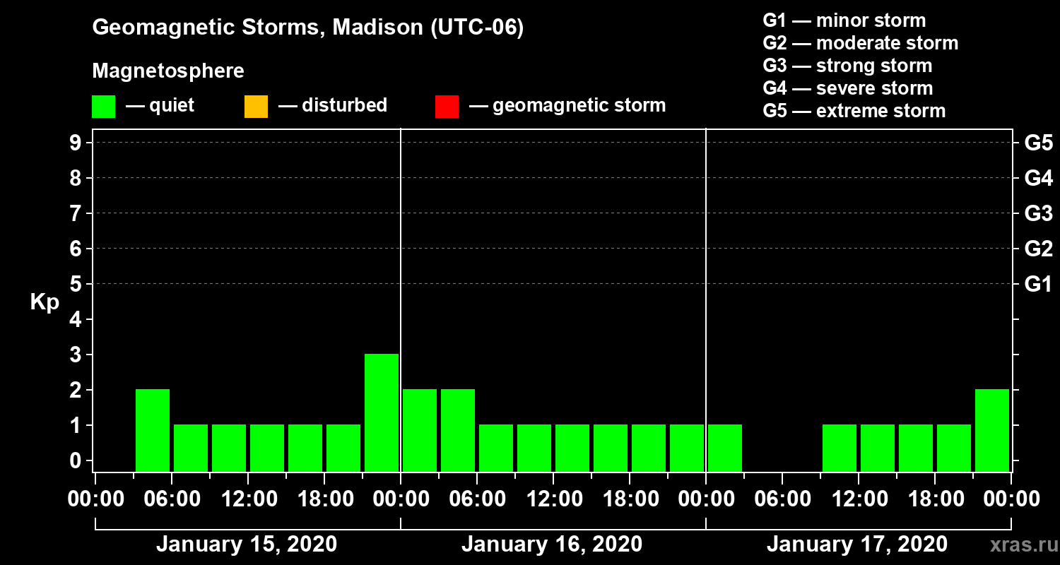 Changes in the geomagnetic index Kp from January 15 to 17, 2020 for mid latitudes
