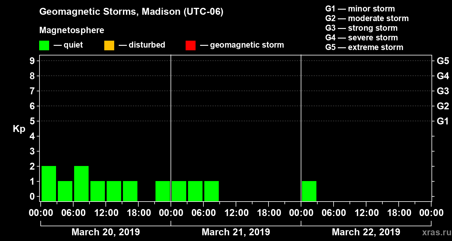 Geomagnetic storms in Madison — Mar 22, 2019