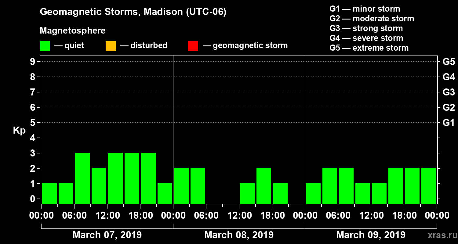 Geomagnetic storms in Madison on Mar 09, 2019