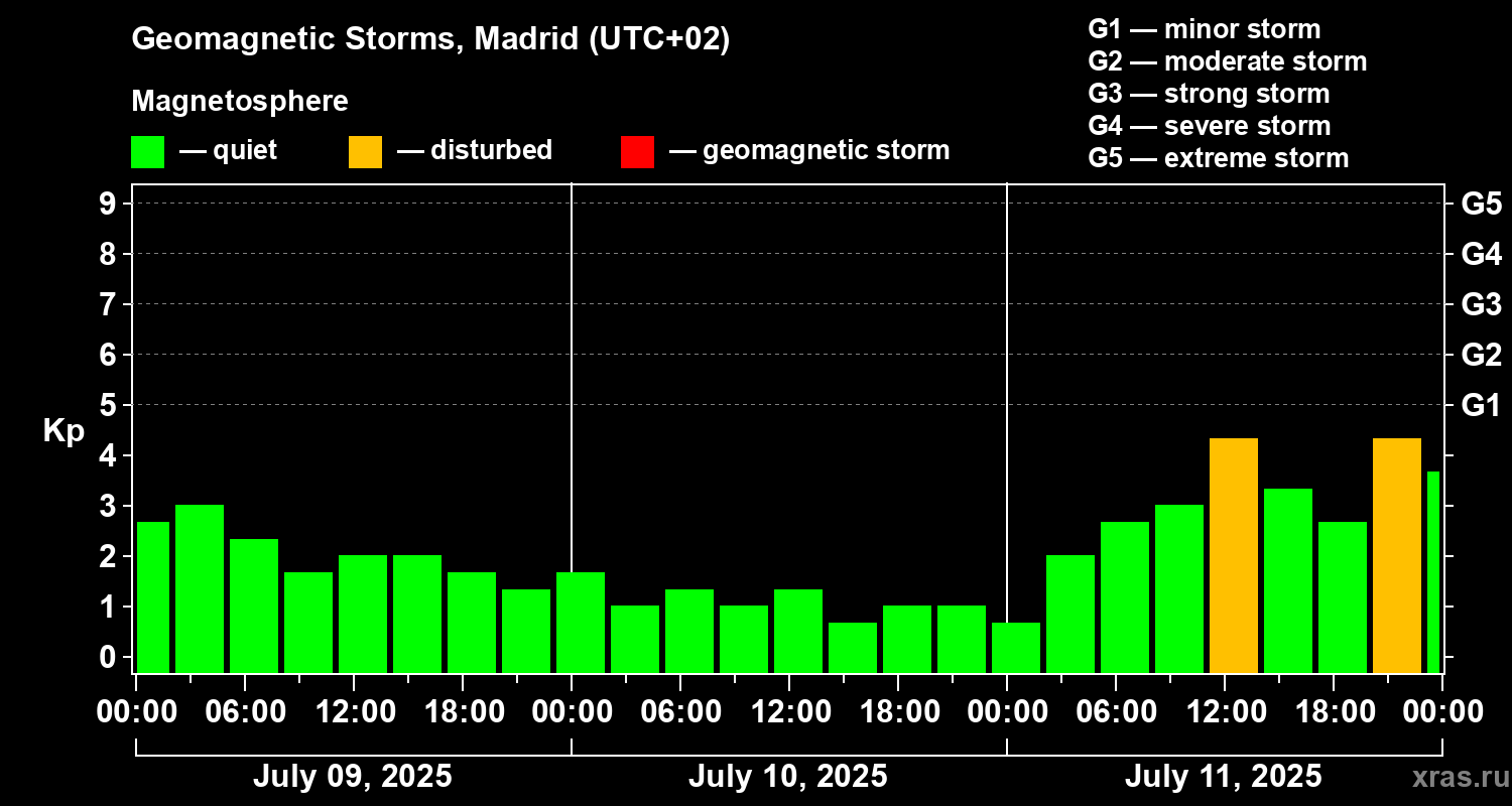 Geomagnetic storms in Madrid — Jul 11, 2025