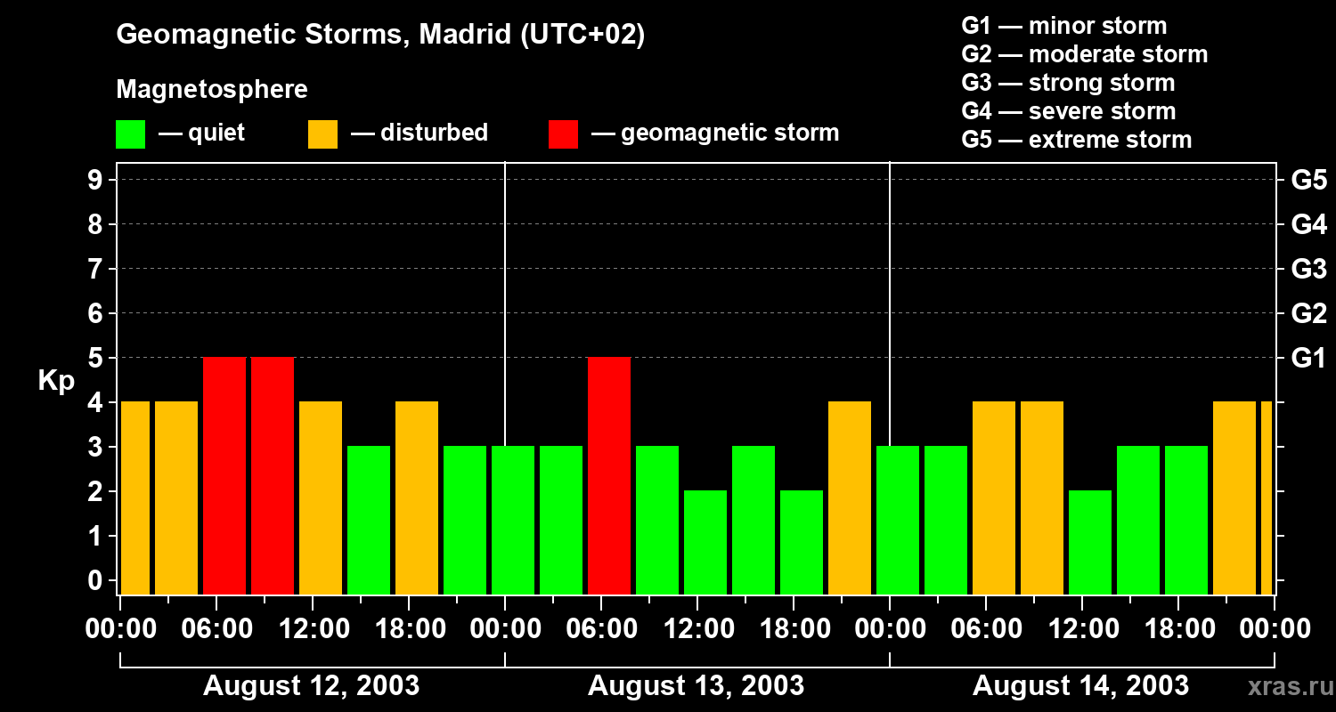 Geomagnetic storms in Madrid — Aug 14, 2003