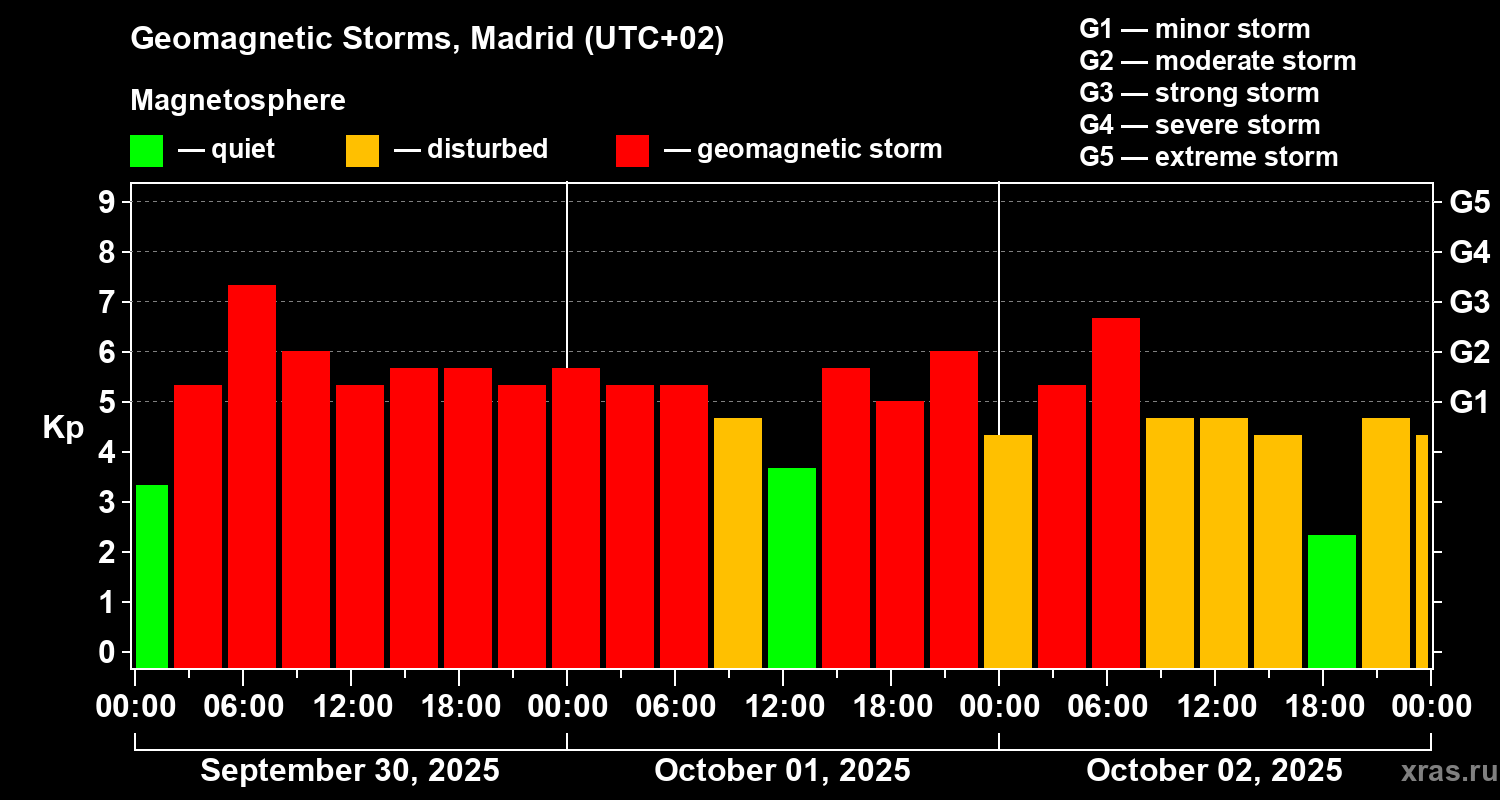 Geomagnetic storms in Madrid — Oct 02, 2025