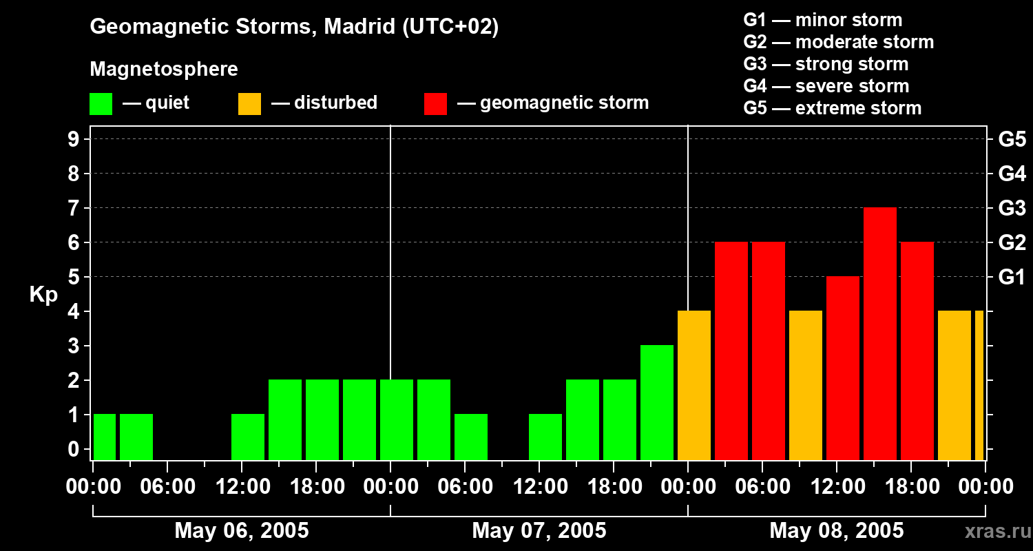 Geomagnetic storms in Madrid on May 08, 2005