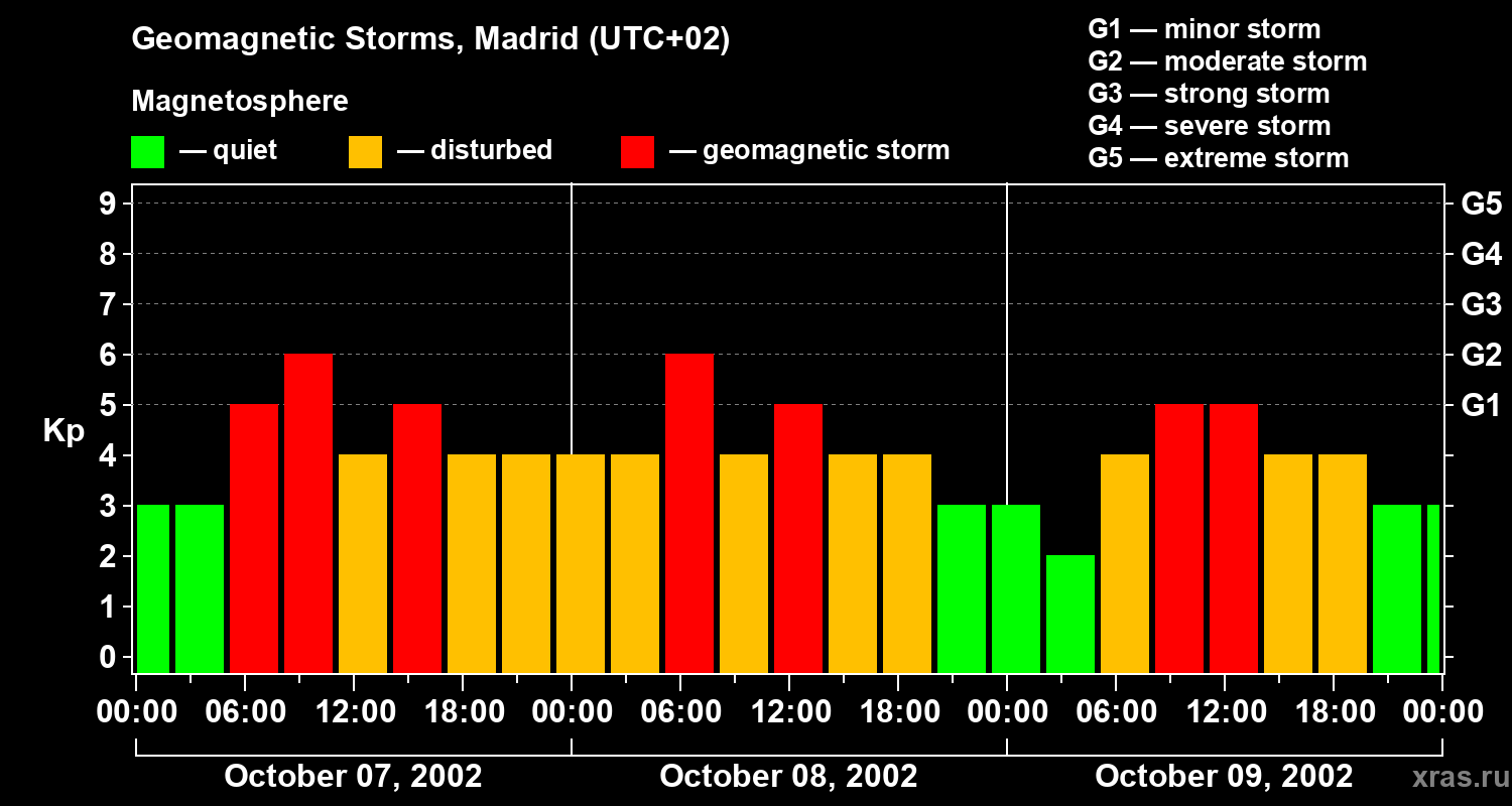 Geomagnetic storms in Madrid on Oct 09, 2002