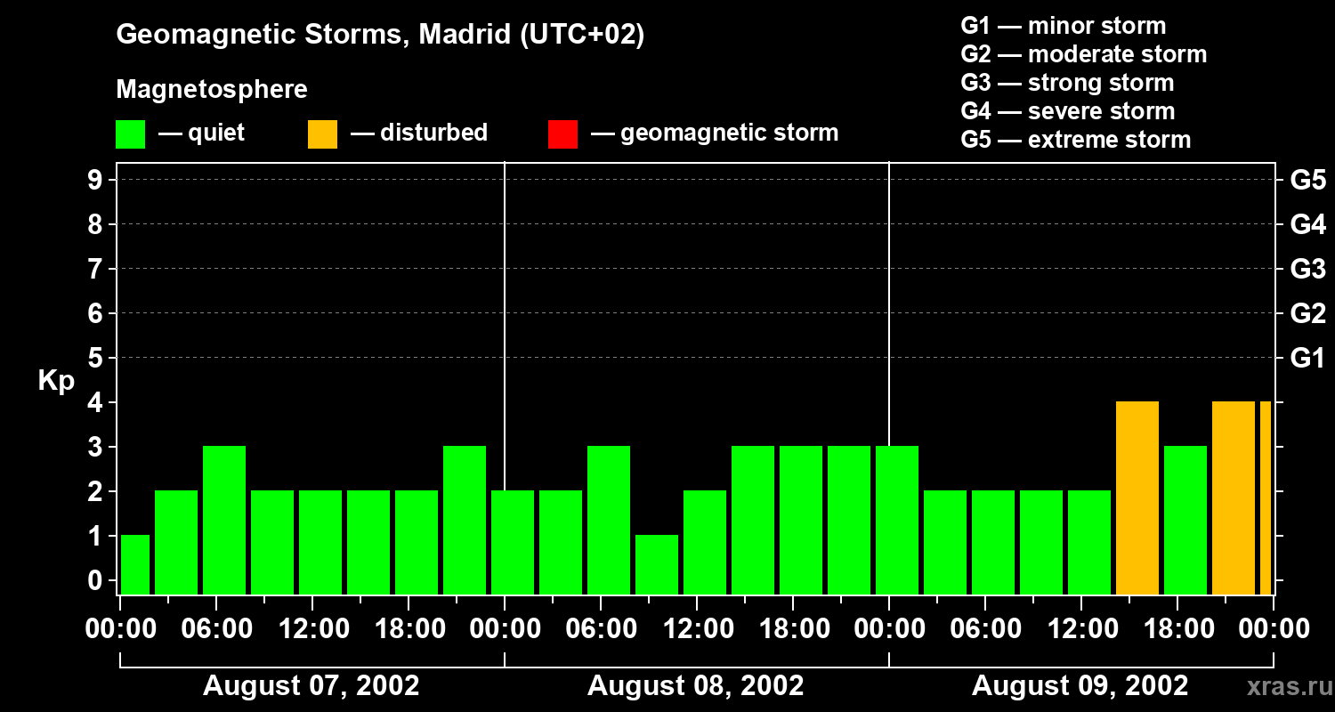 Geomagnetic storms in Madrid on Aug 09, 2002