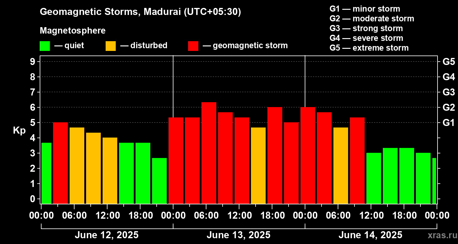 Geomagnetic storms in Madurai — Jun 14, 2025