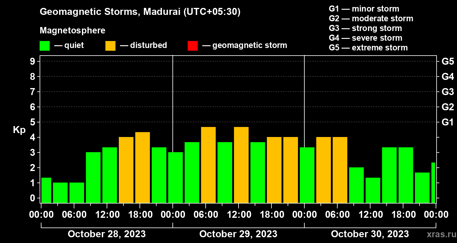 Geomagnetic storms in Madurai — Oct 30, 2023