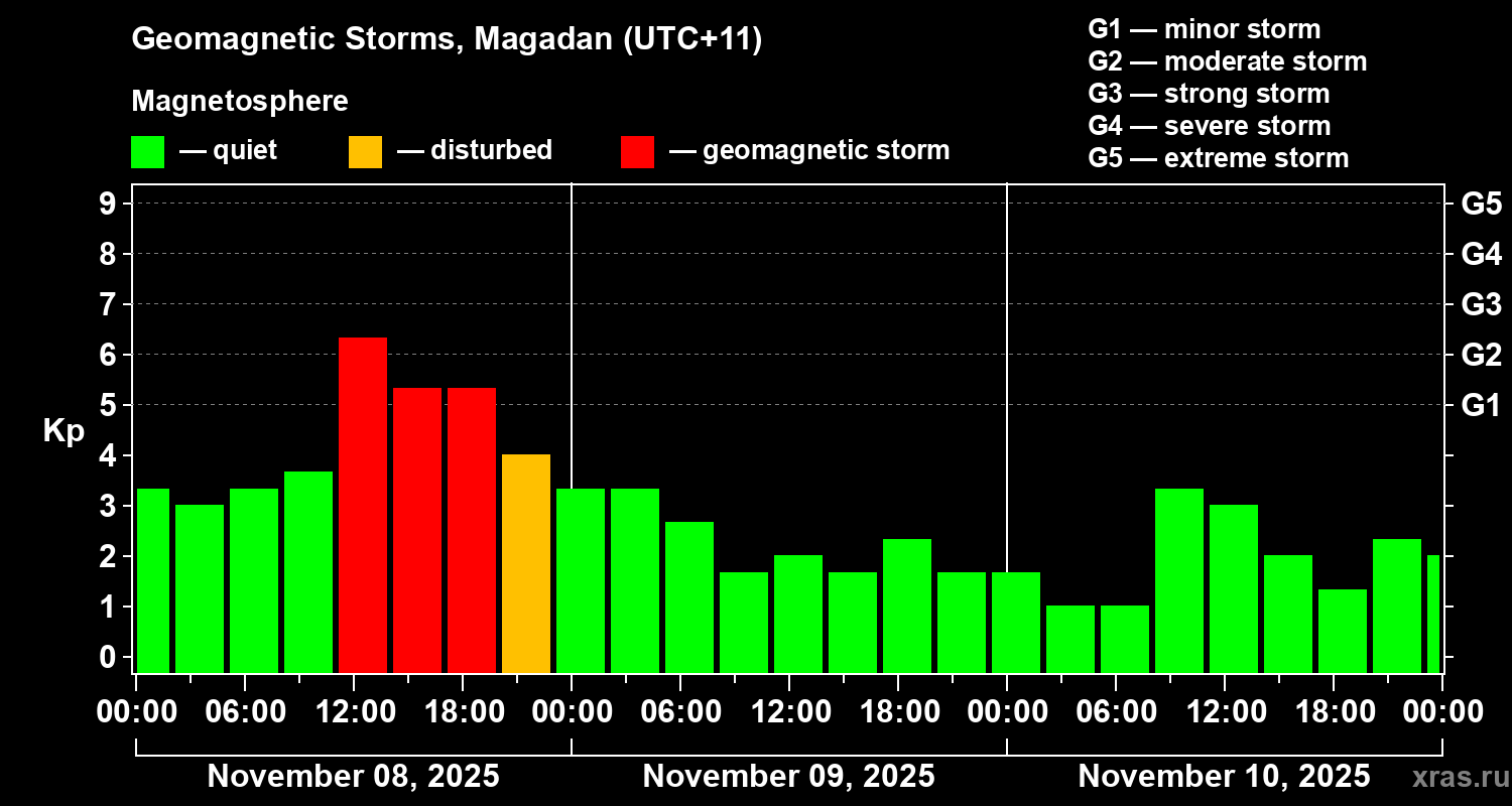 Geomagnetic storms in Magadan — Nov 10, 2025