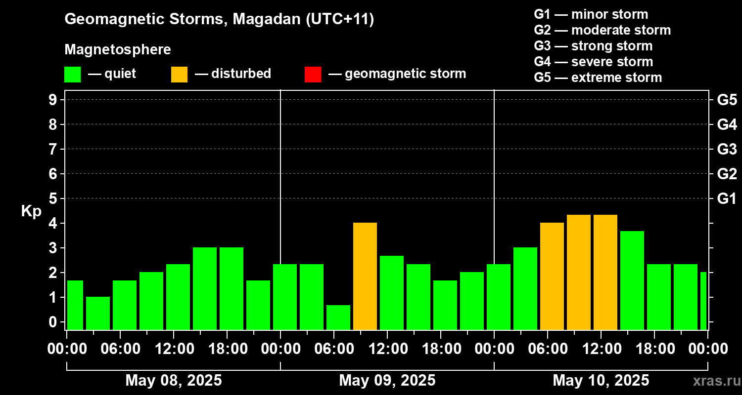 Geomagnetic storms in Magadan — May 10, 2025