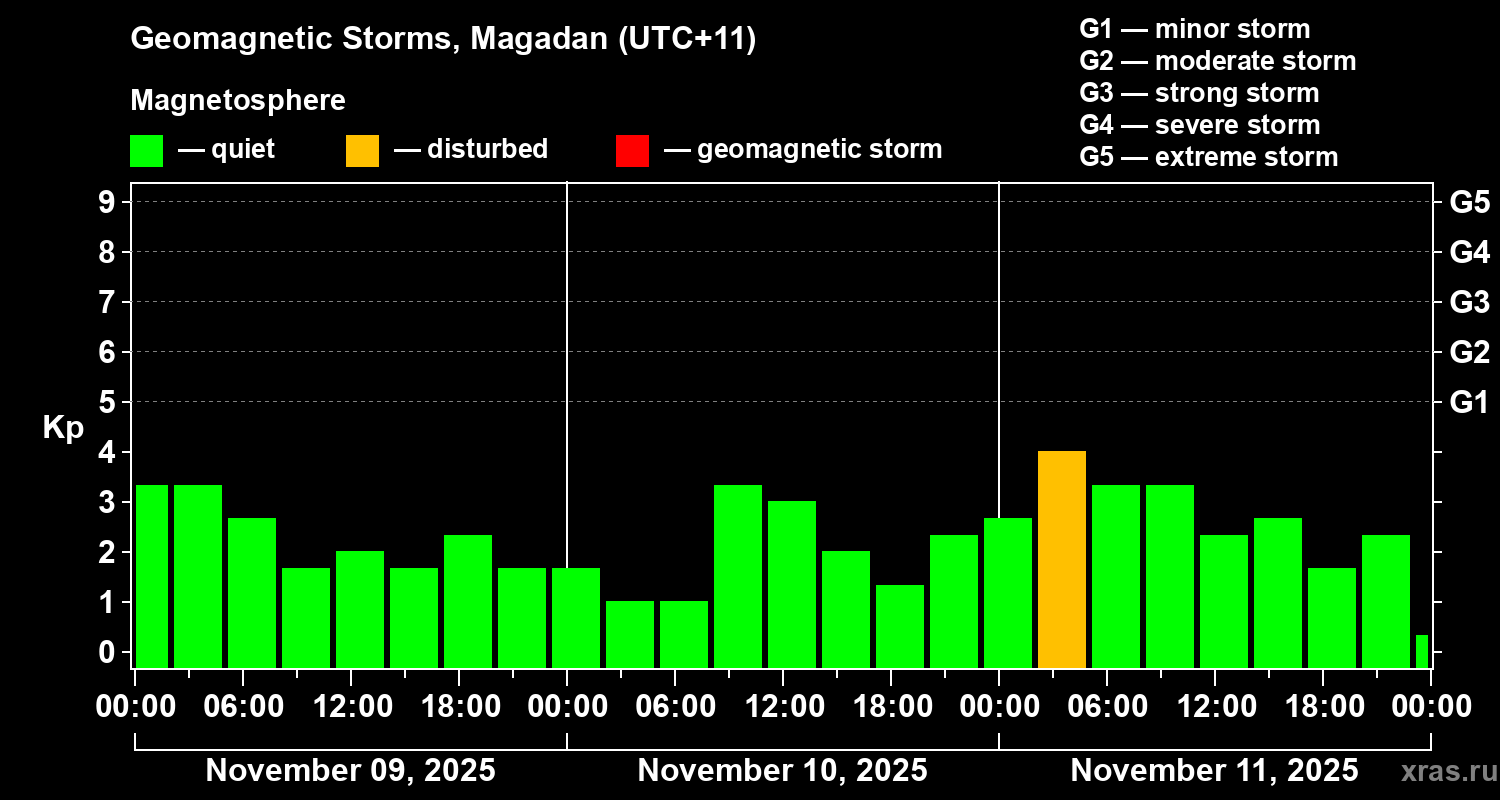 Geomagnetic storms in Magadan — Nov 11, 2025