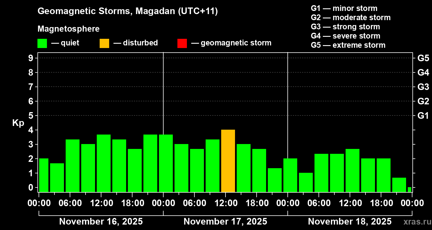 Geomagnetic storms in Magadan — Nov 18, 2025