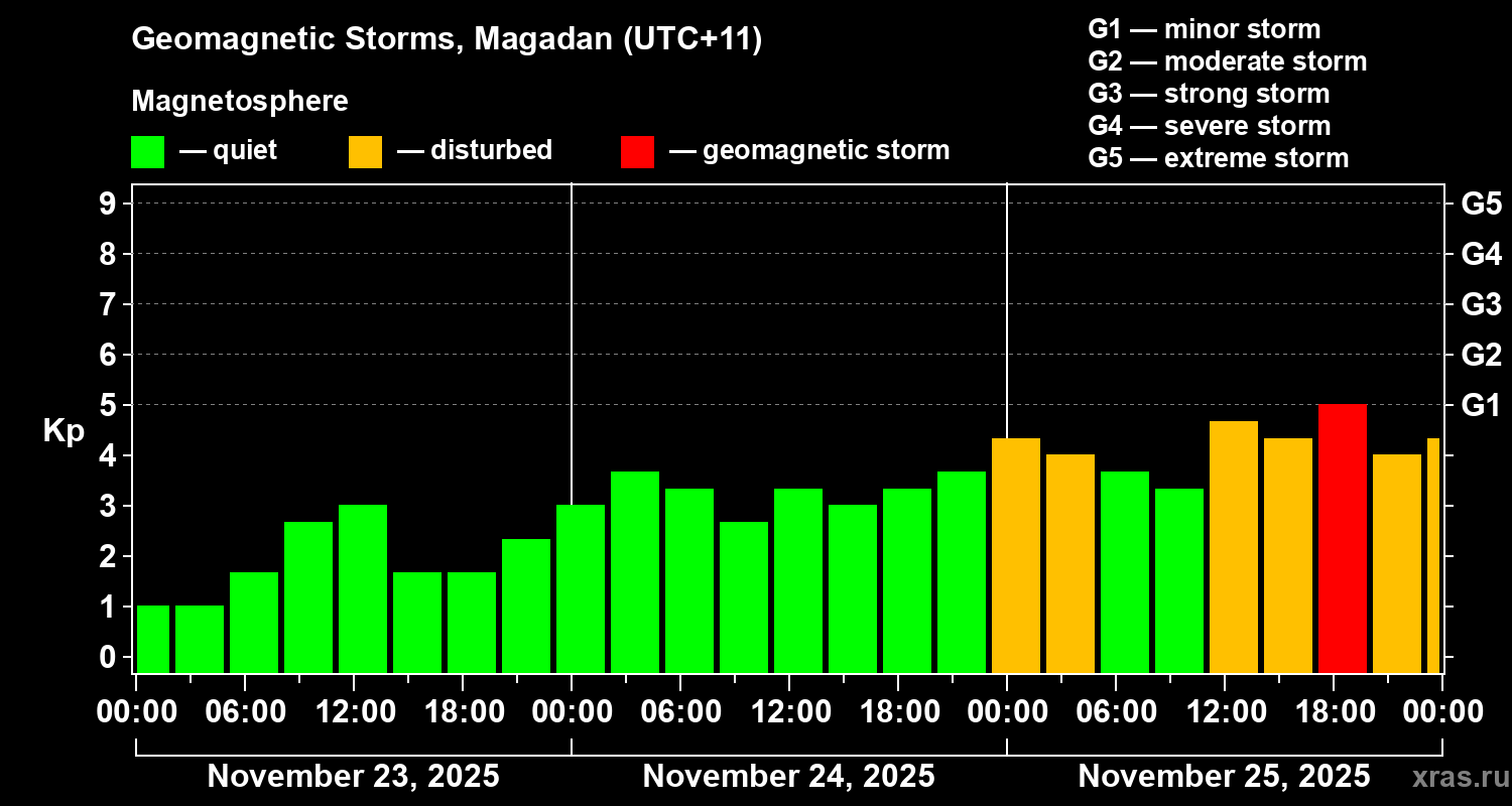 Geomagnetic storms in Magadan — Nov 25, 2025