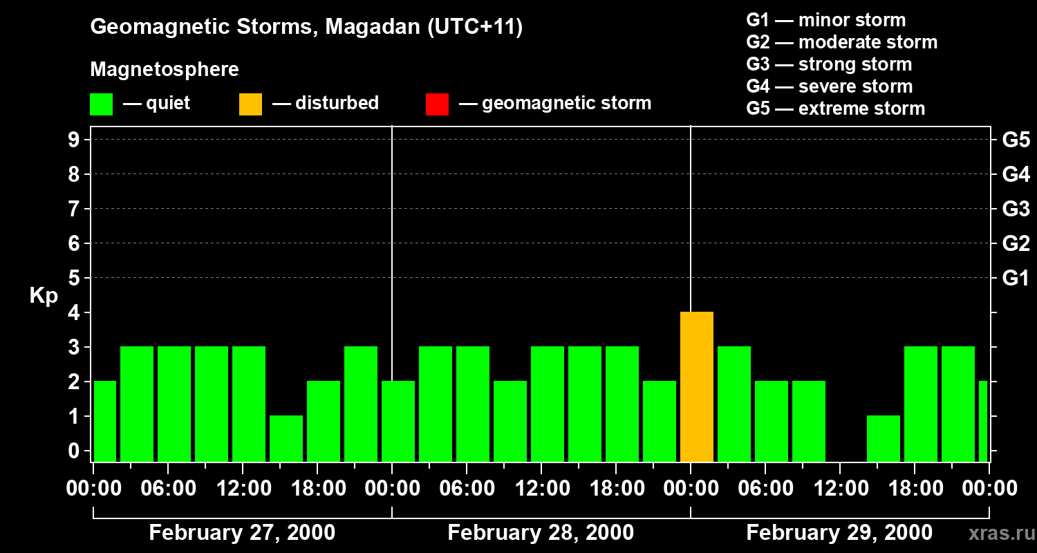 Geomagnetic storms in Magadan — Feb 29, 2000