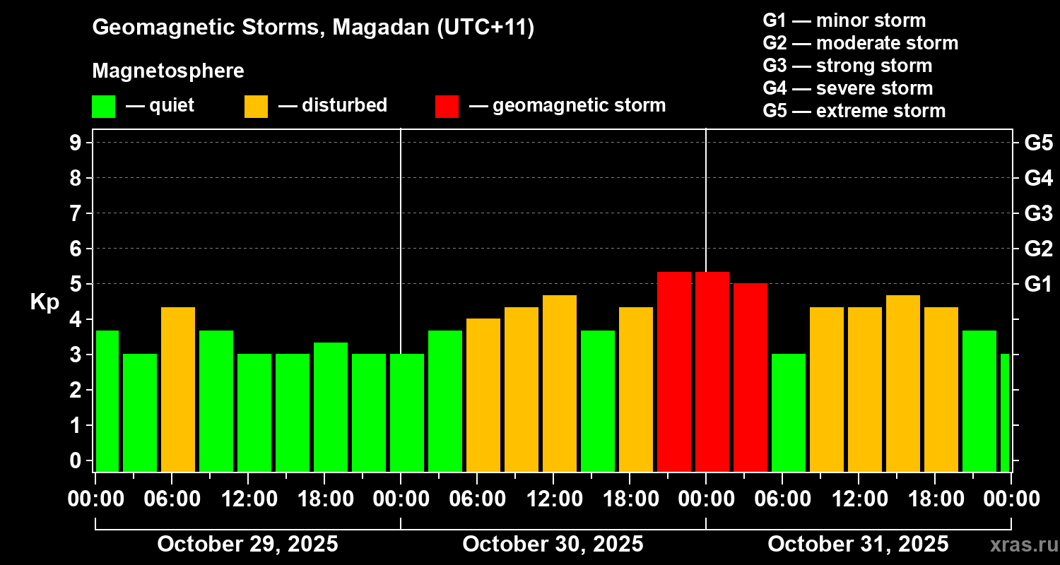 Geomagnetic storms in Magadan — Oct 31, 2025