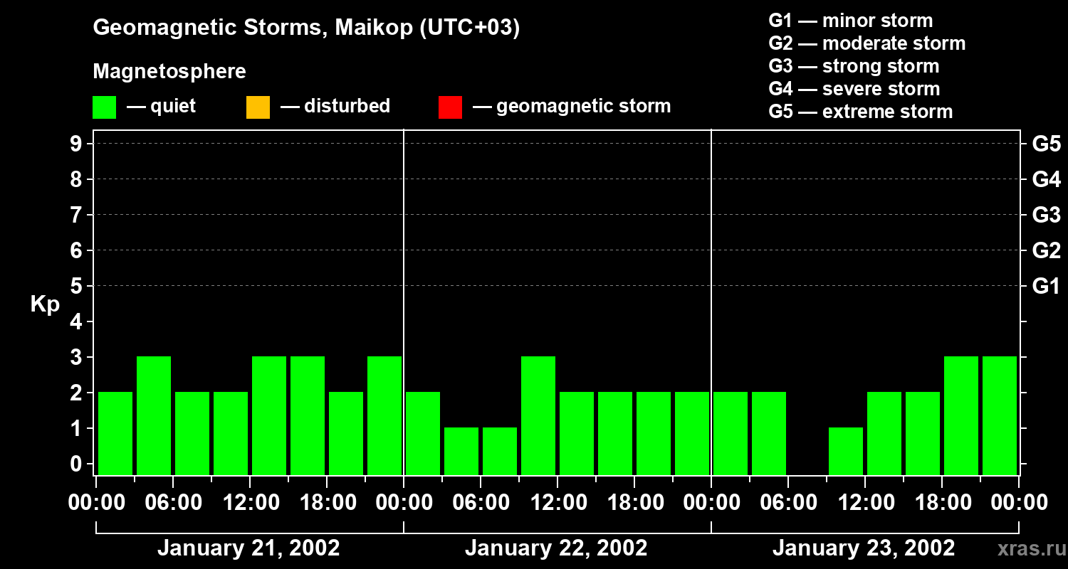 Geomagnetic storms in Maikop — Jan 23, 2002