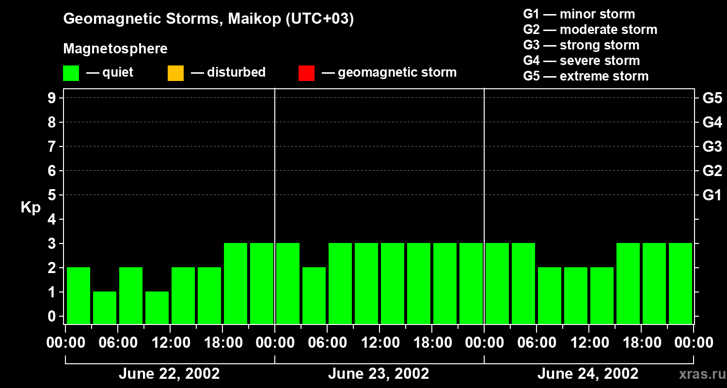 Geomagnetic storms in Maikop on Jun 24, 2002