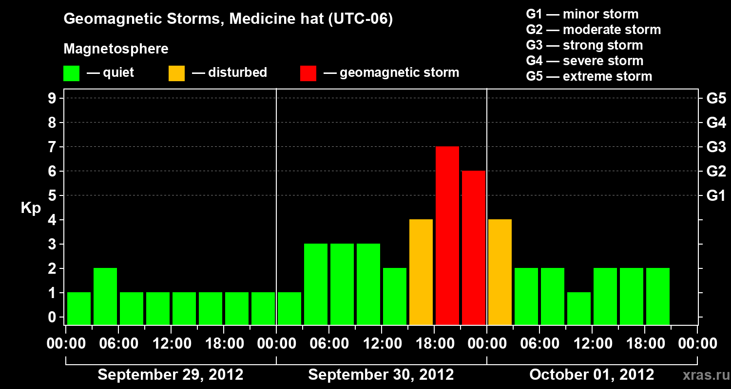 Geomagnetic storms in Medicine hat — Oct 01, 2012