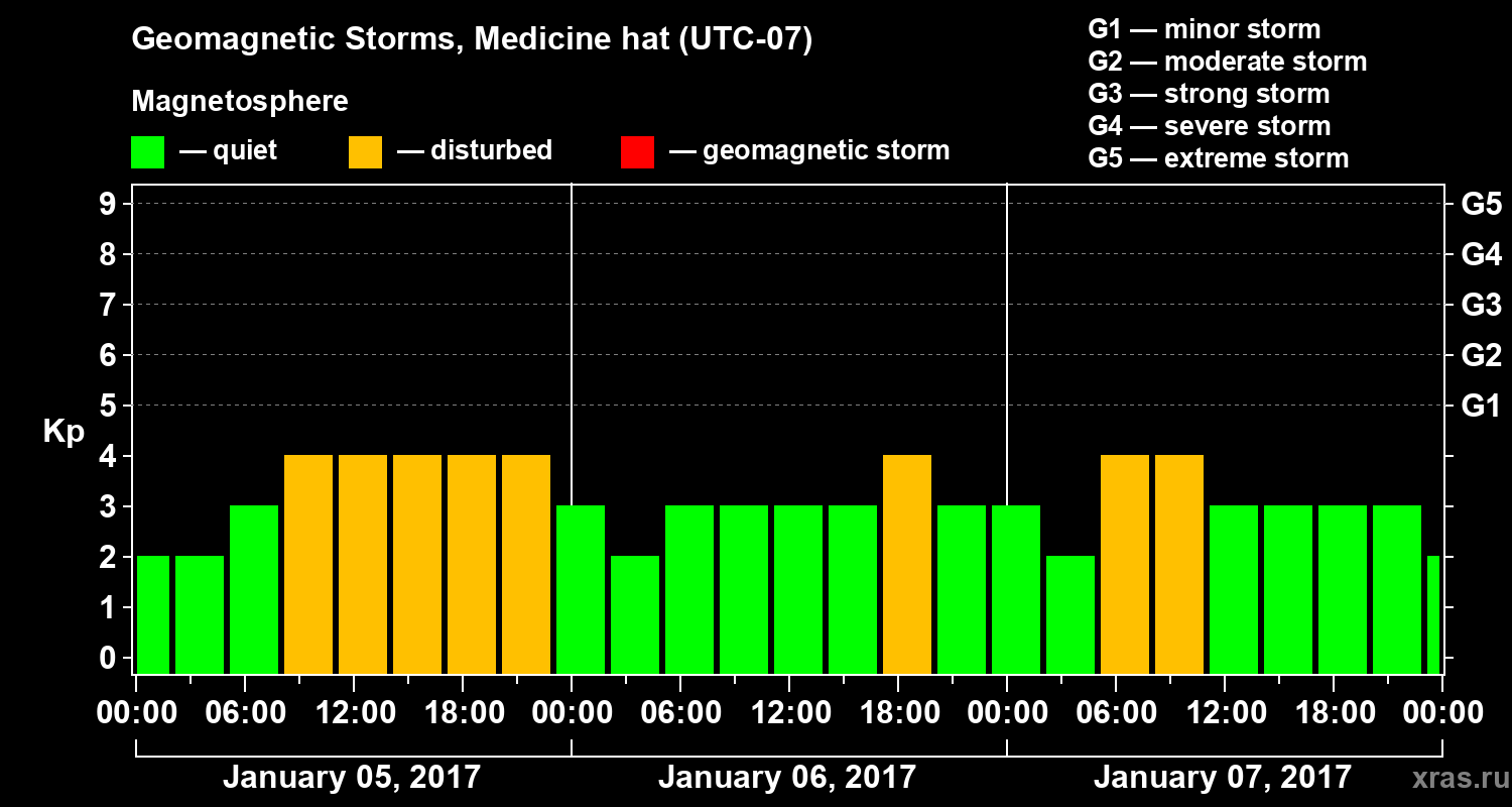 Geomagnetic storms in Medicine hat — Jan 07, 2017