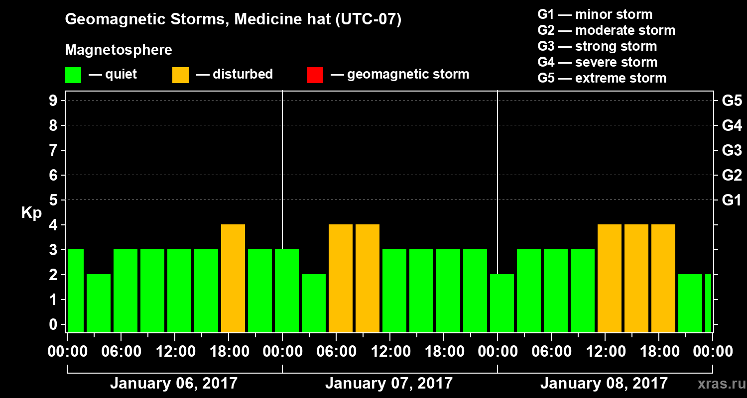 Geomagnetic storms in Medicine hat — Jan 08, 2017