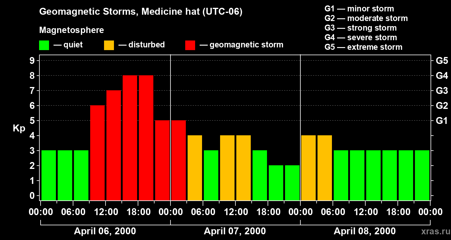 Geomagnetic storms in Medicine hat — Apr 08, 2000