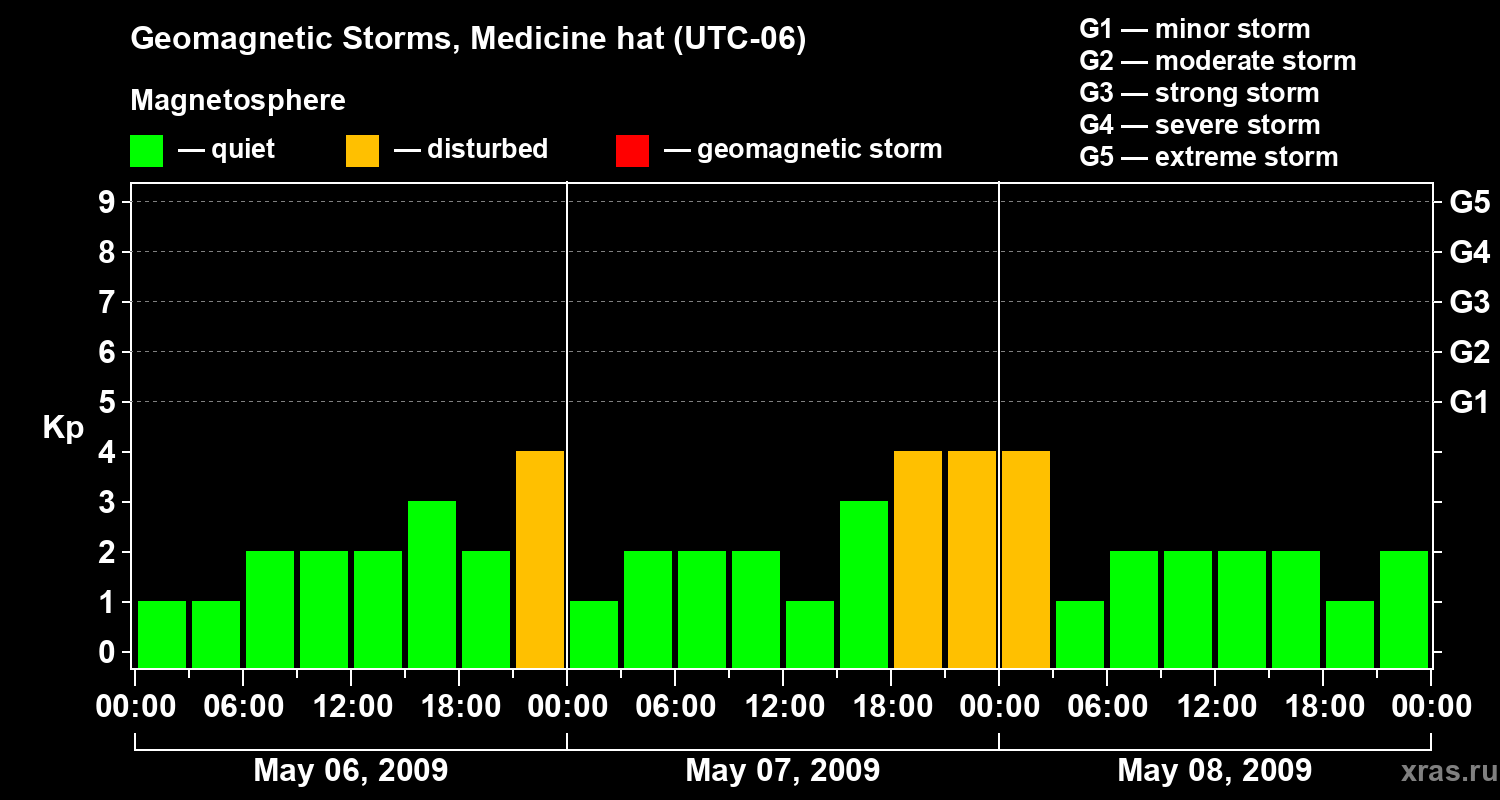 Geomagnetic storms in Medicine hat — May 08, 2009