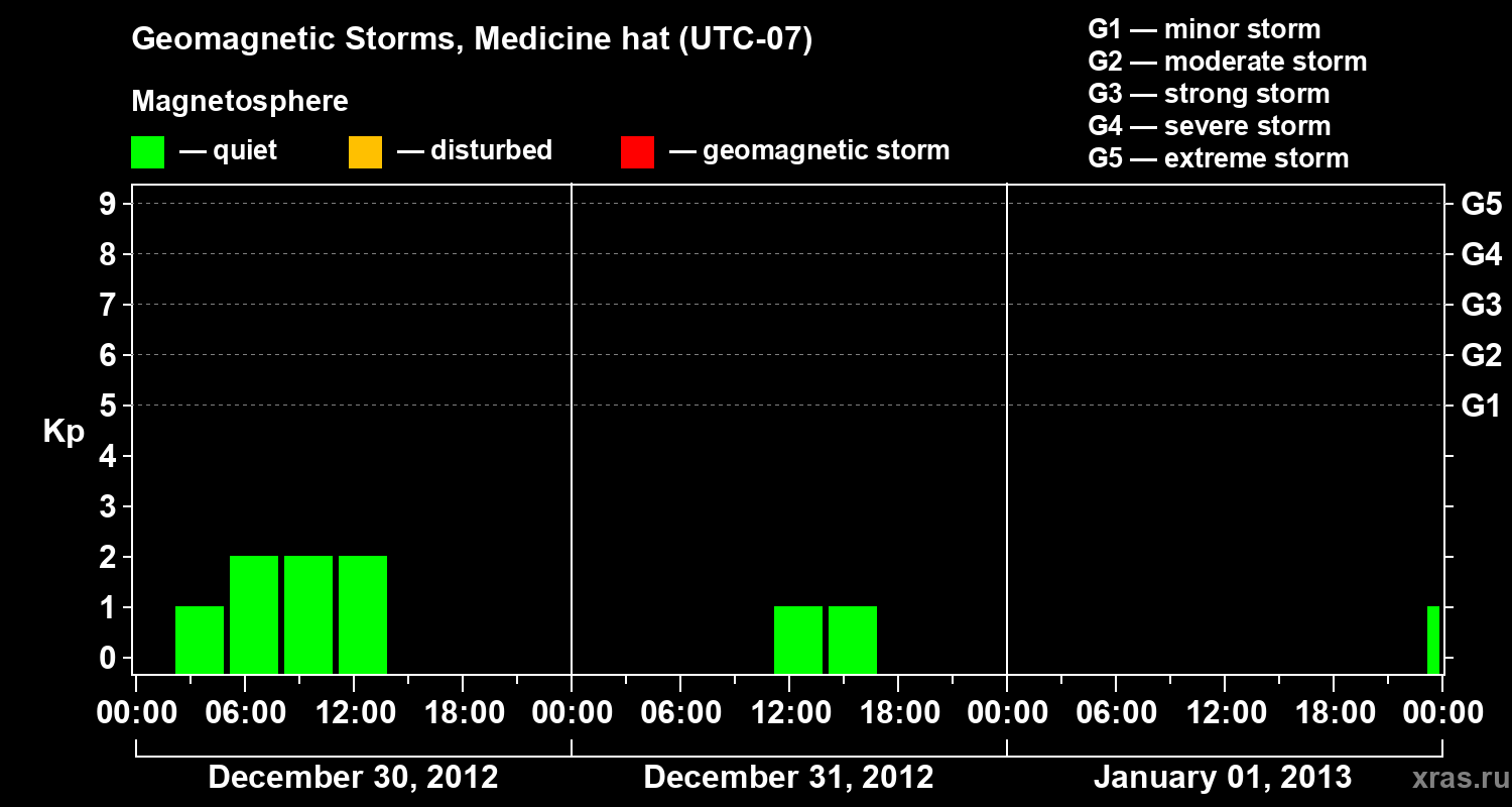 Geomagnetic storms in Medicine hat — Jan 01, 2013