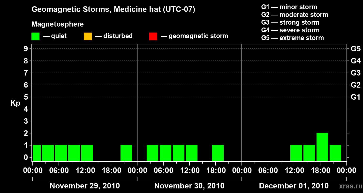 Geomagnetic storms in Medicine hat — Dec 01, 2010