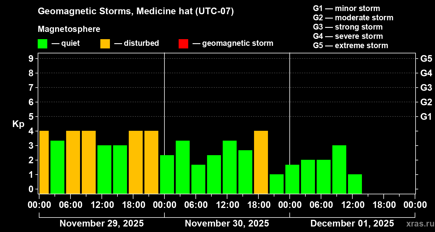 Geomagnetic storms in Medicine hat — Dec 01, 2025