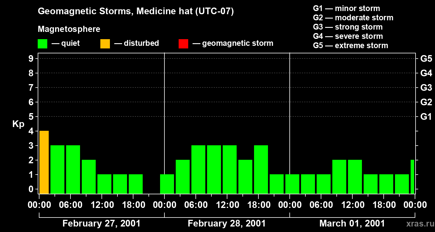 Geomagnetic storms in Medicine hat on Mar 01, 2001
