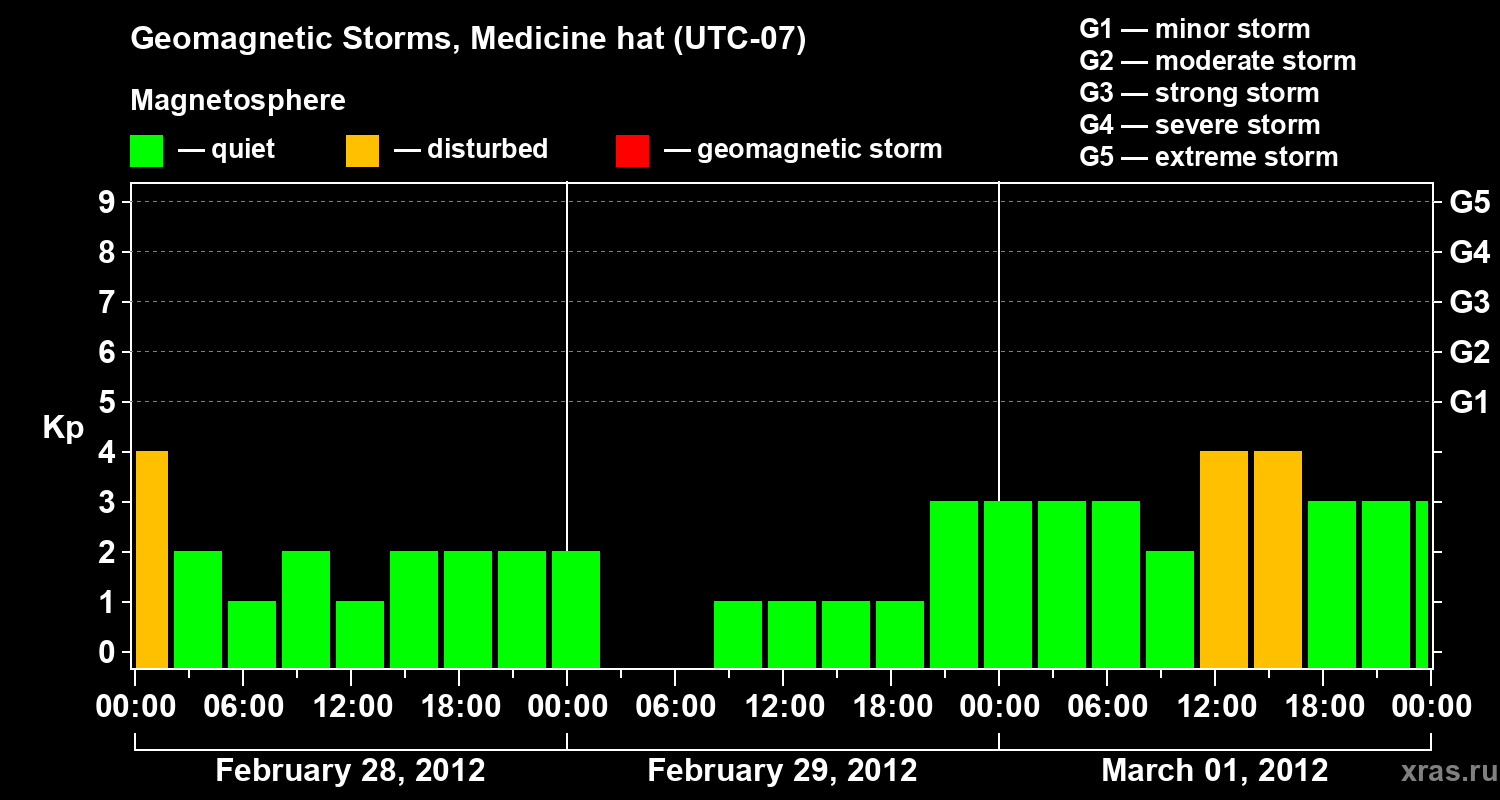 Geomagnetic storms in Medicine hat on Mar 01, 2012