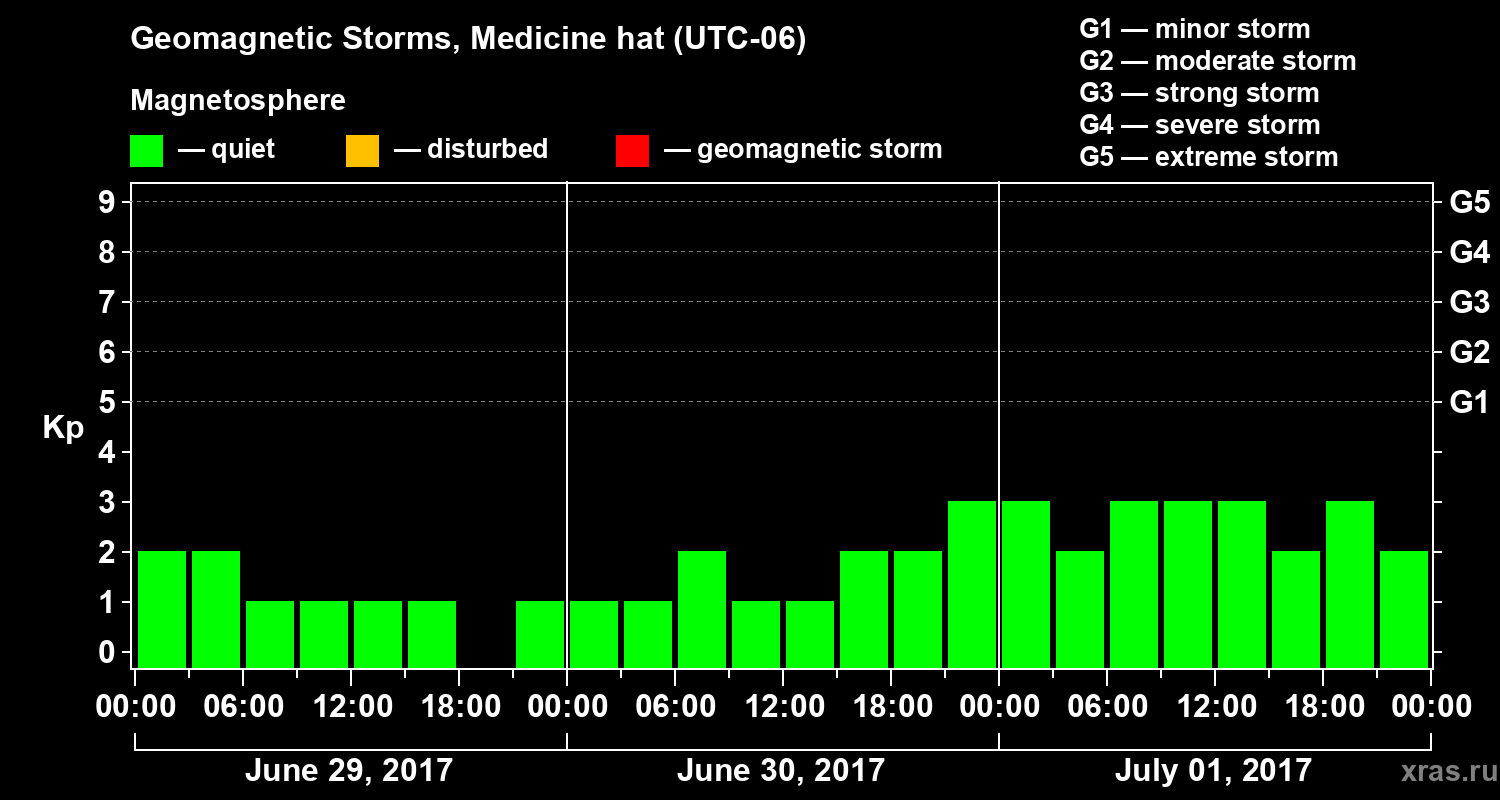 Geomagnetic storms in Medicine hat on Jul 01, 2017