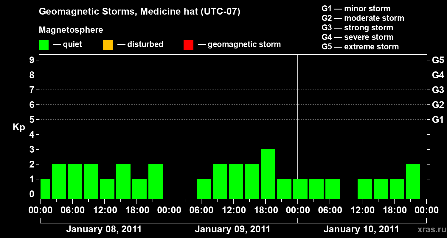 Geomagnetic storms in Medicine hat — Jan 10, 2011