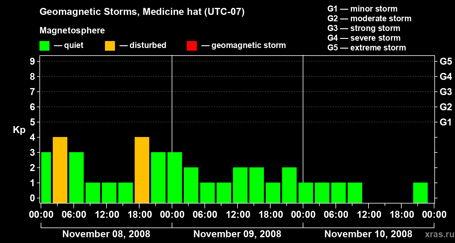 Geomagnetic storms in Medicine hat in November 2008