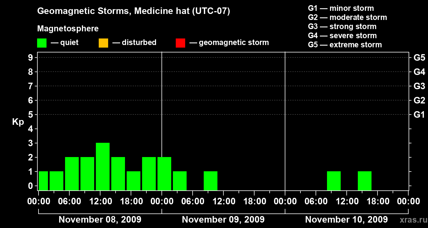 Geomagnetic storms in Medicine hat on Nov 10, 2009