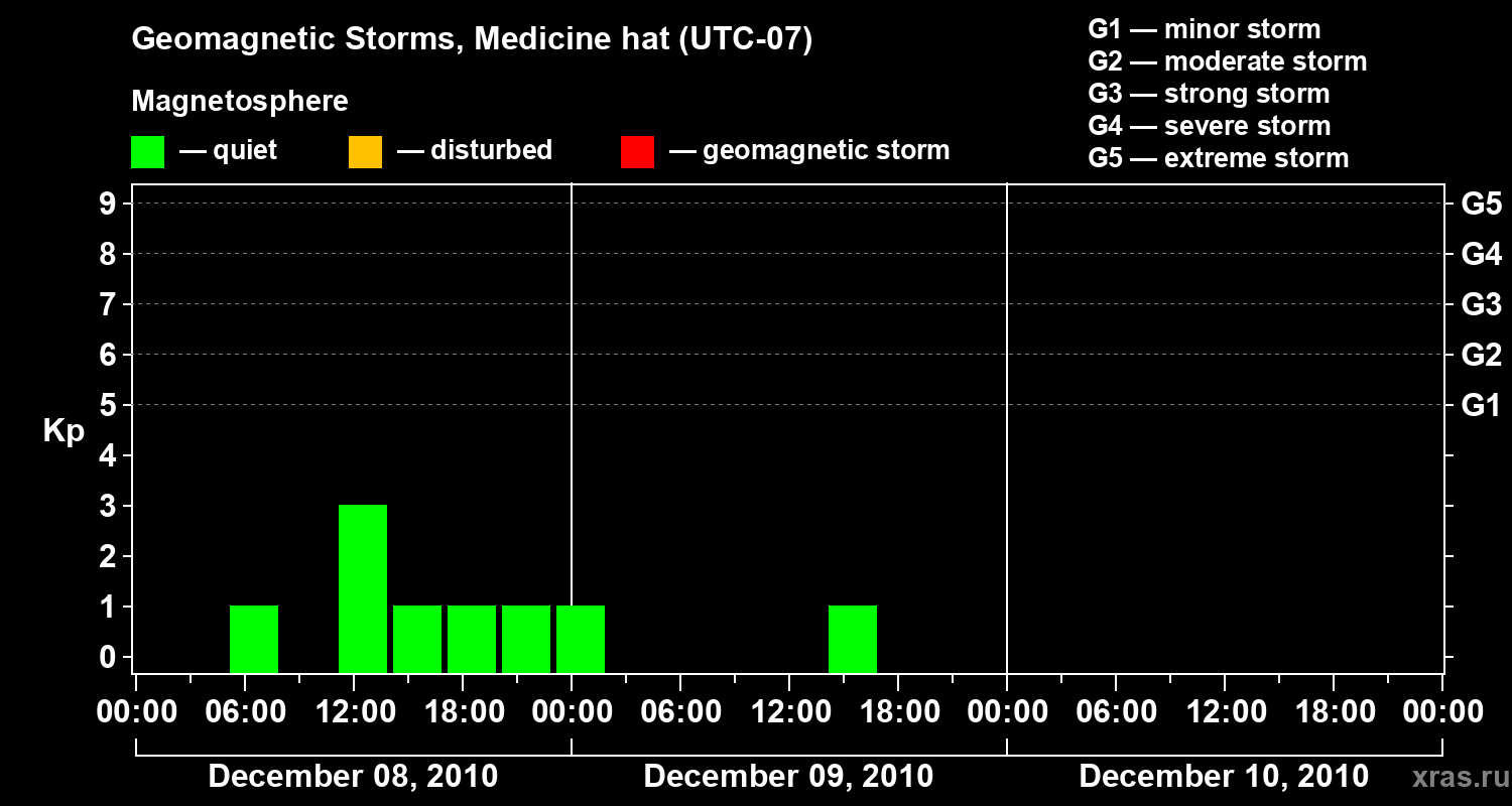 Geomagnetic storms in Medicine hat on Dec 10, 2010