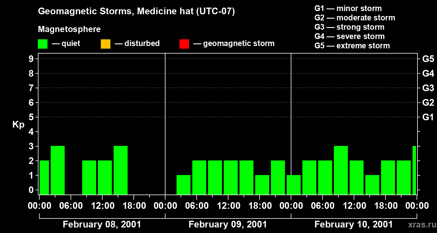 Geomagnetic storms in Medicine hat on Feb 10, 2001