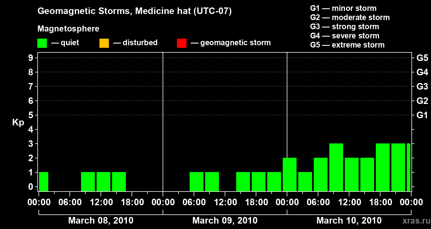 Geomagnetic storms in Medicine hat on Mar 10, 2010