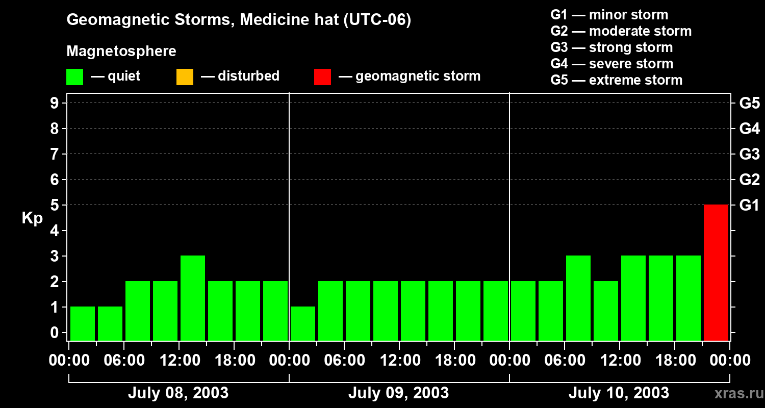 Geomagnetic storms in Medicine hat on Jul 10, 2003
