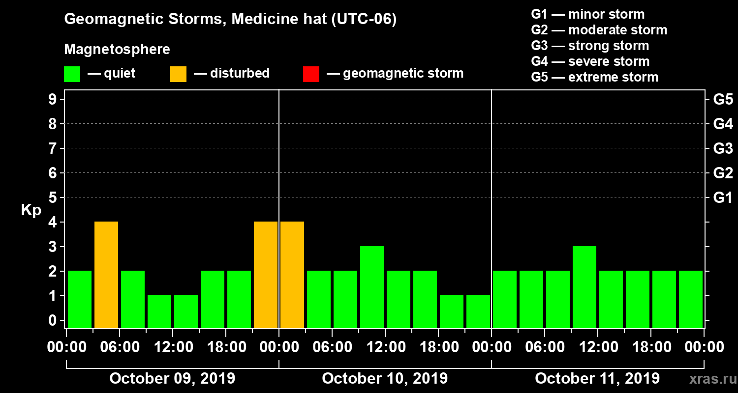 Geomagnetic storms in Medicine hat on Oct 11, 2019