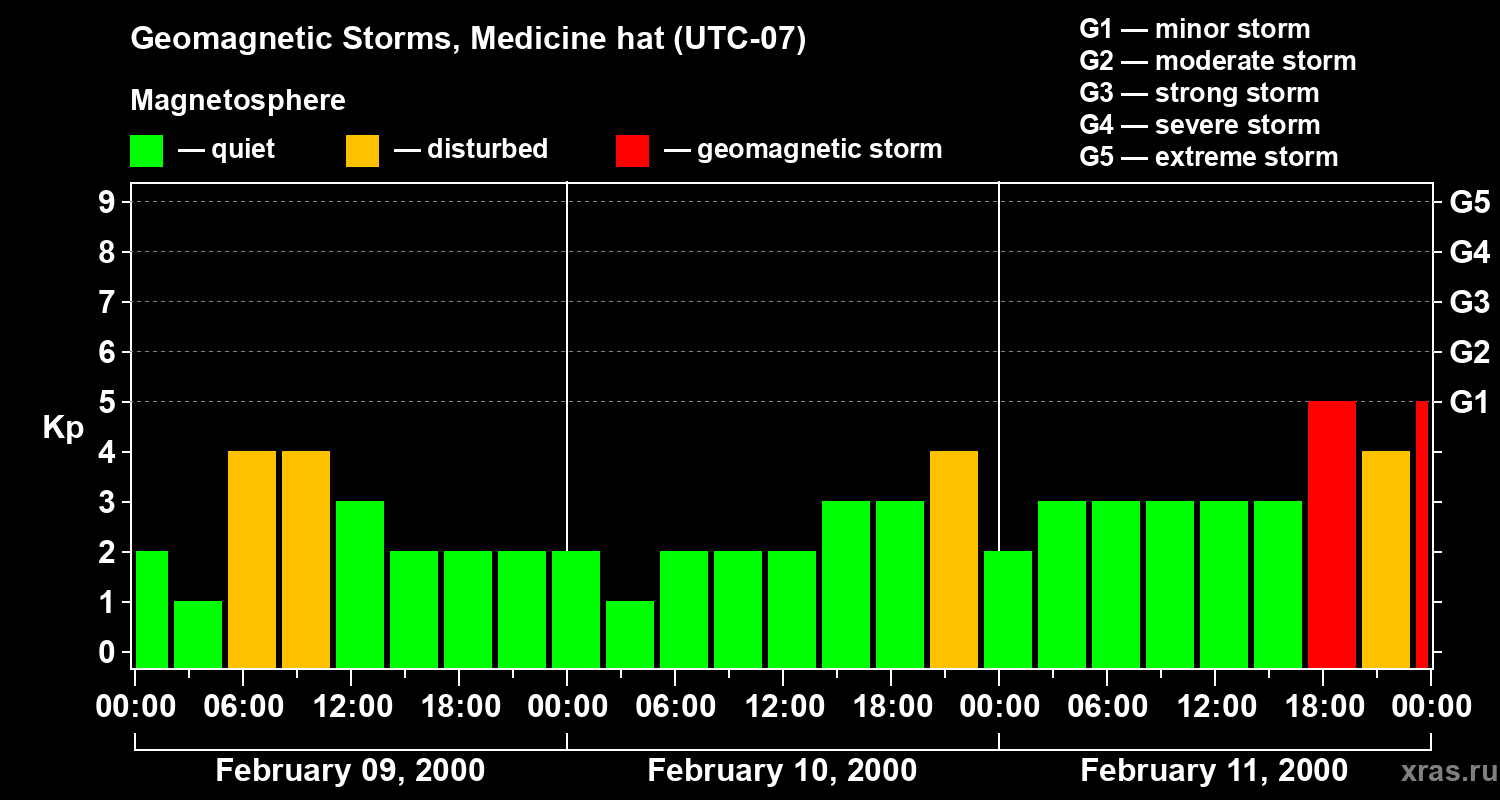 Geomagnetic storms in Medicine hat on Feb 11, 2000