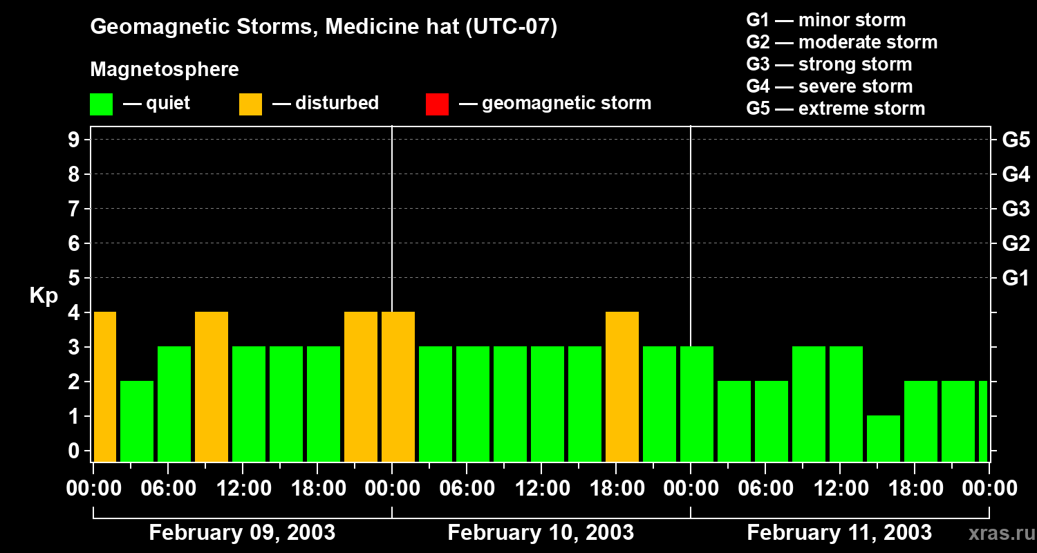 Geomagnetic storms in Medicine hat on Feb 11, 2003