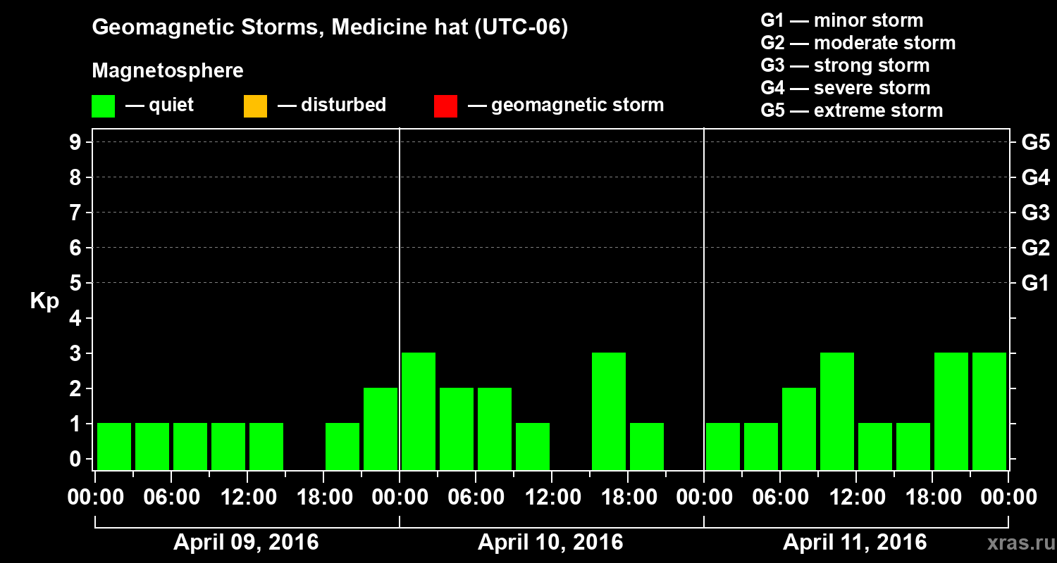 Geomagnetic storms in Medicine hat — Apr 11, 2016