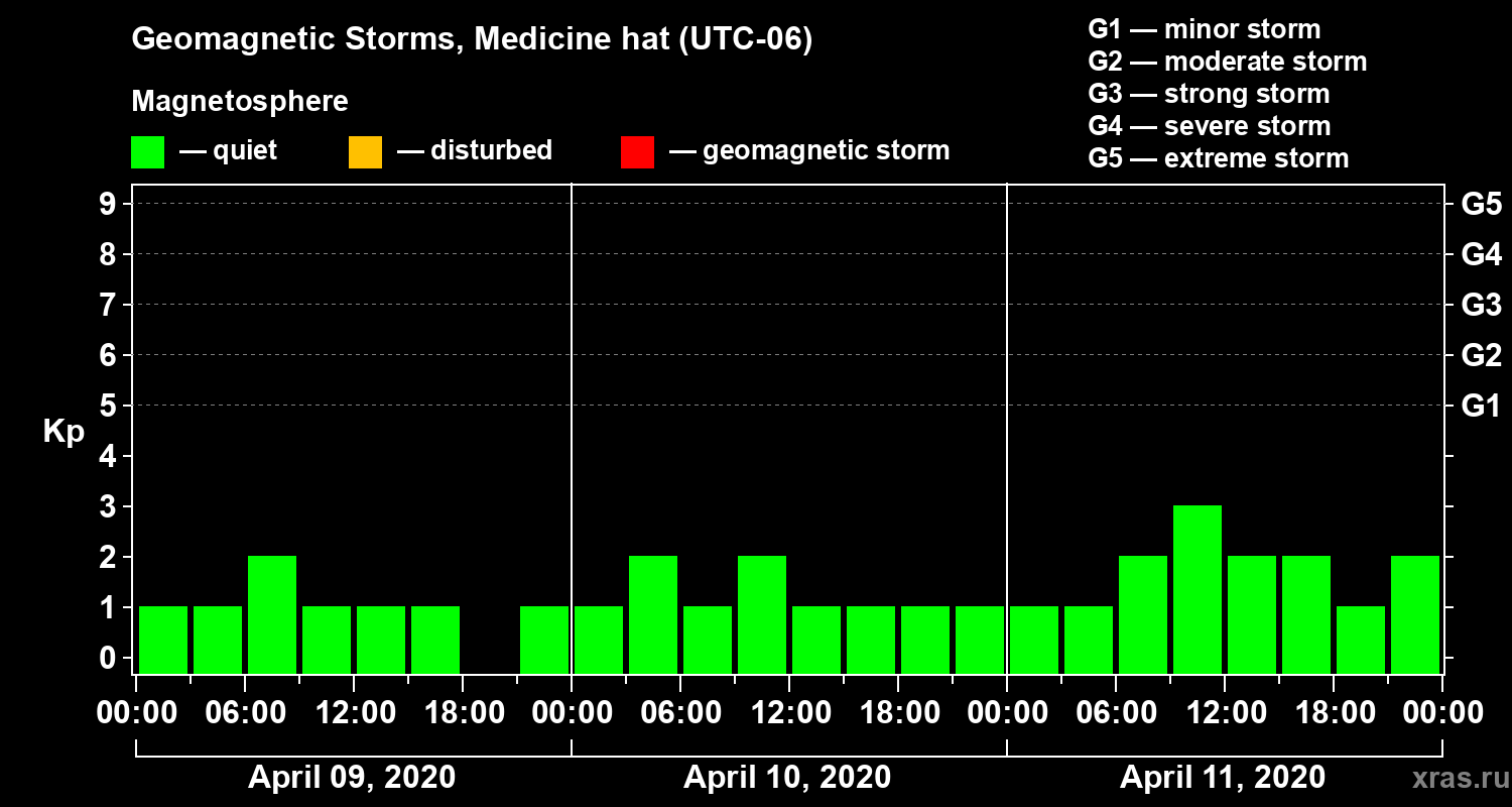 Geomagnetic storms in Medicine hat — Apr 11, 2020