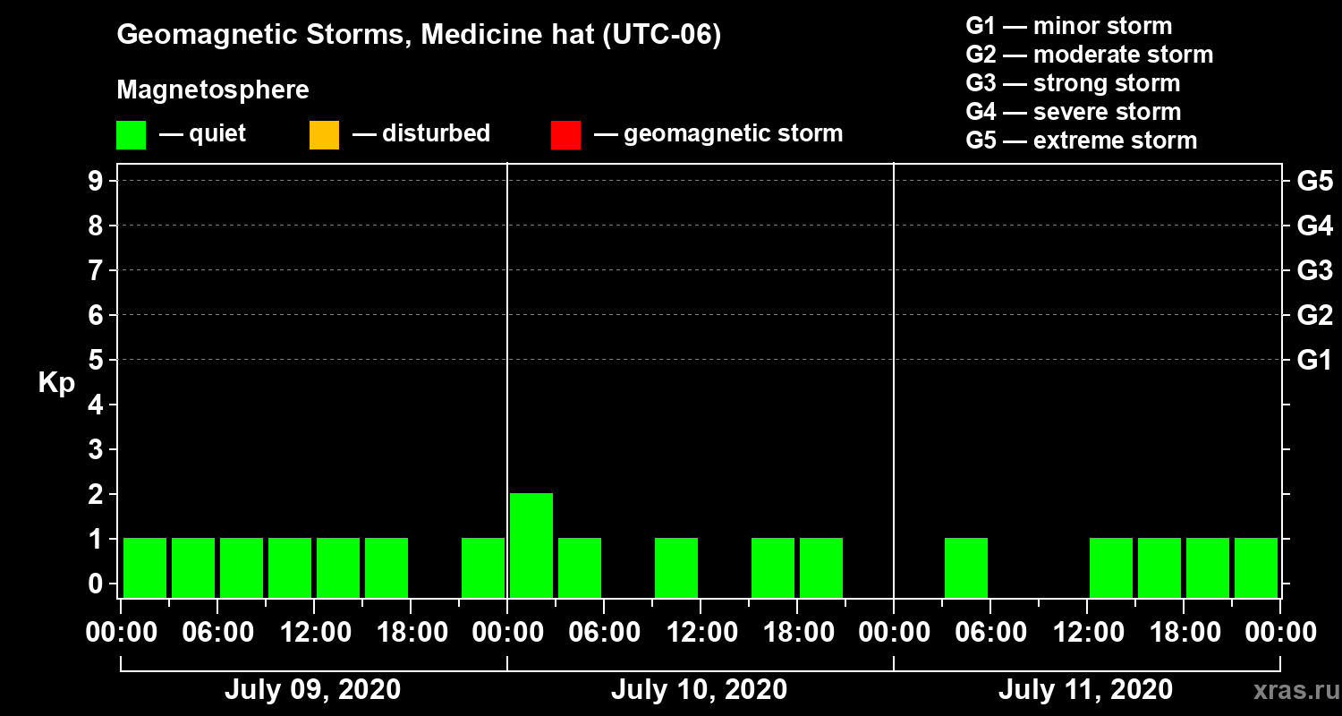 Geomagnetic storms in Medicine hat — Jul 11, 2020