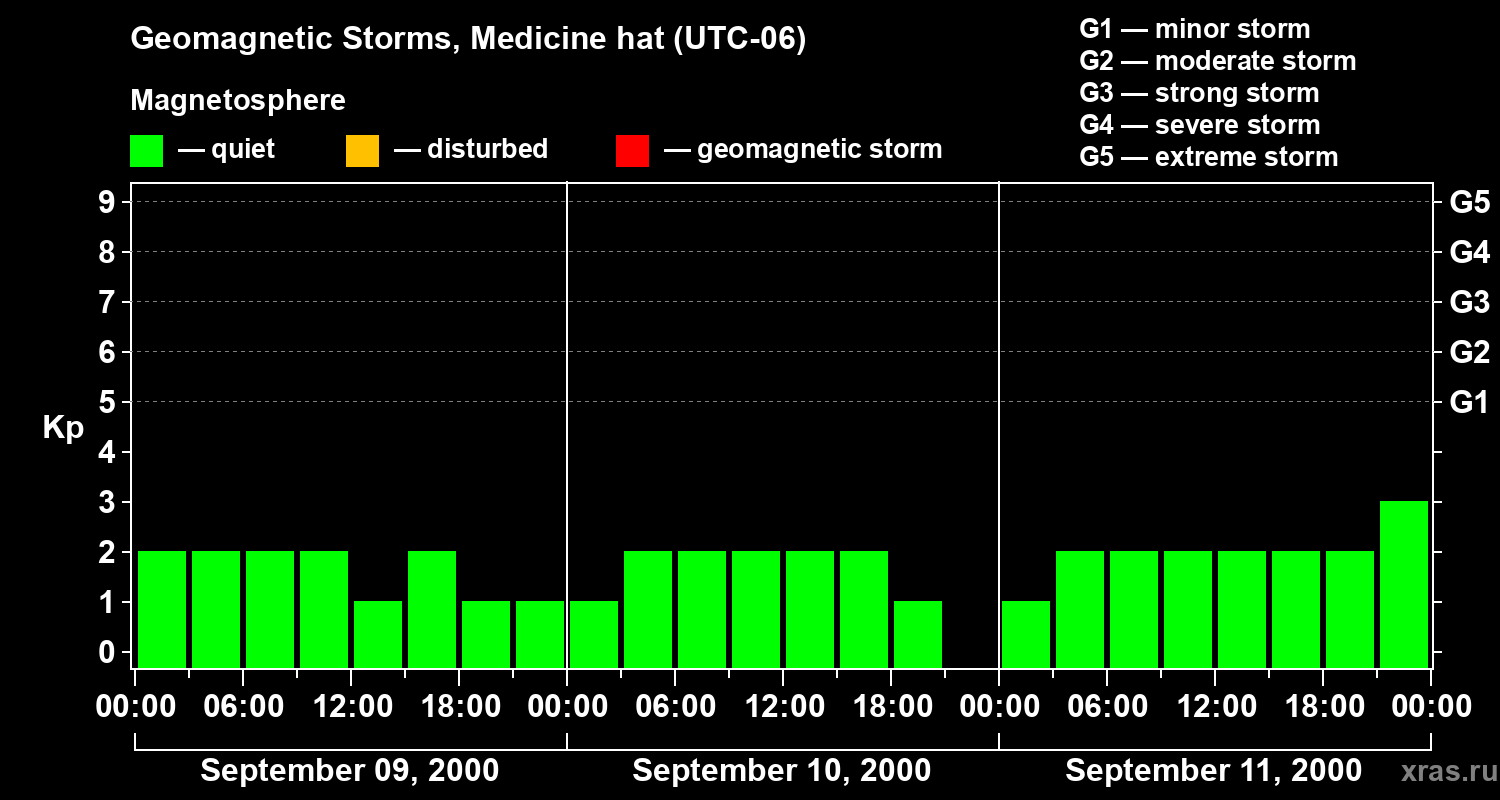 Geomagnetic storms in Medicine hat on Sep 11, 2000