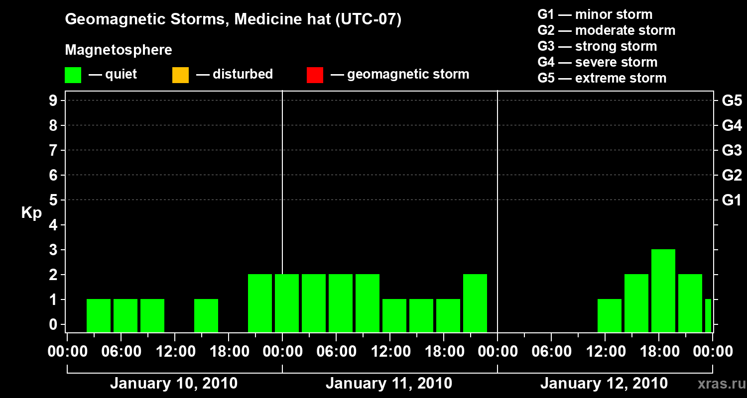 Geomagnetic storms in Medicine hat on Jan 12, 2010
