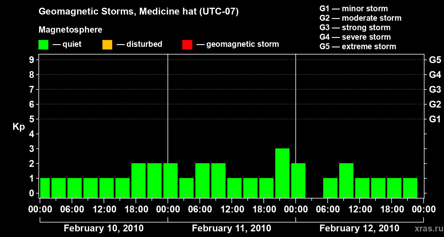 Geomagnetic storms in Medicine hat — Feb 12, 2010