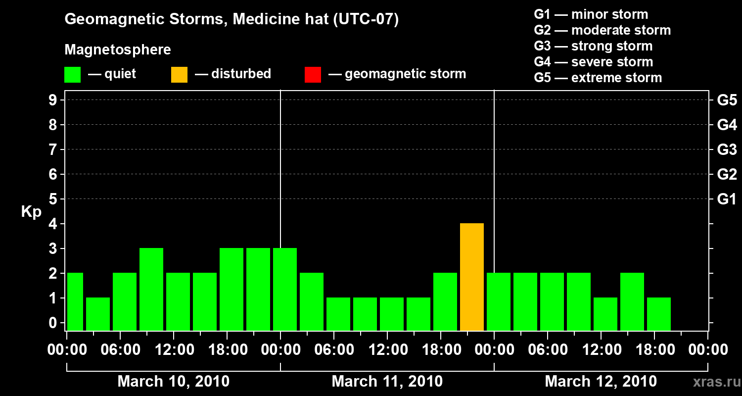 Geomagnetic storms in Medicine hat in March 2010