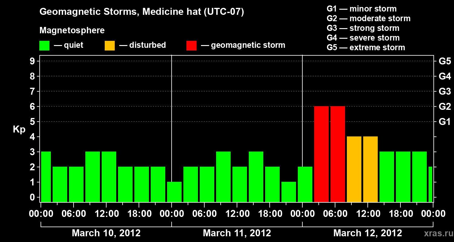 Geomagnetic storms in Medicine hat — Mar 12, 2012